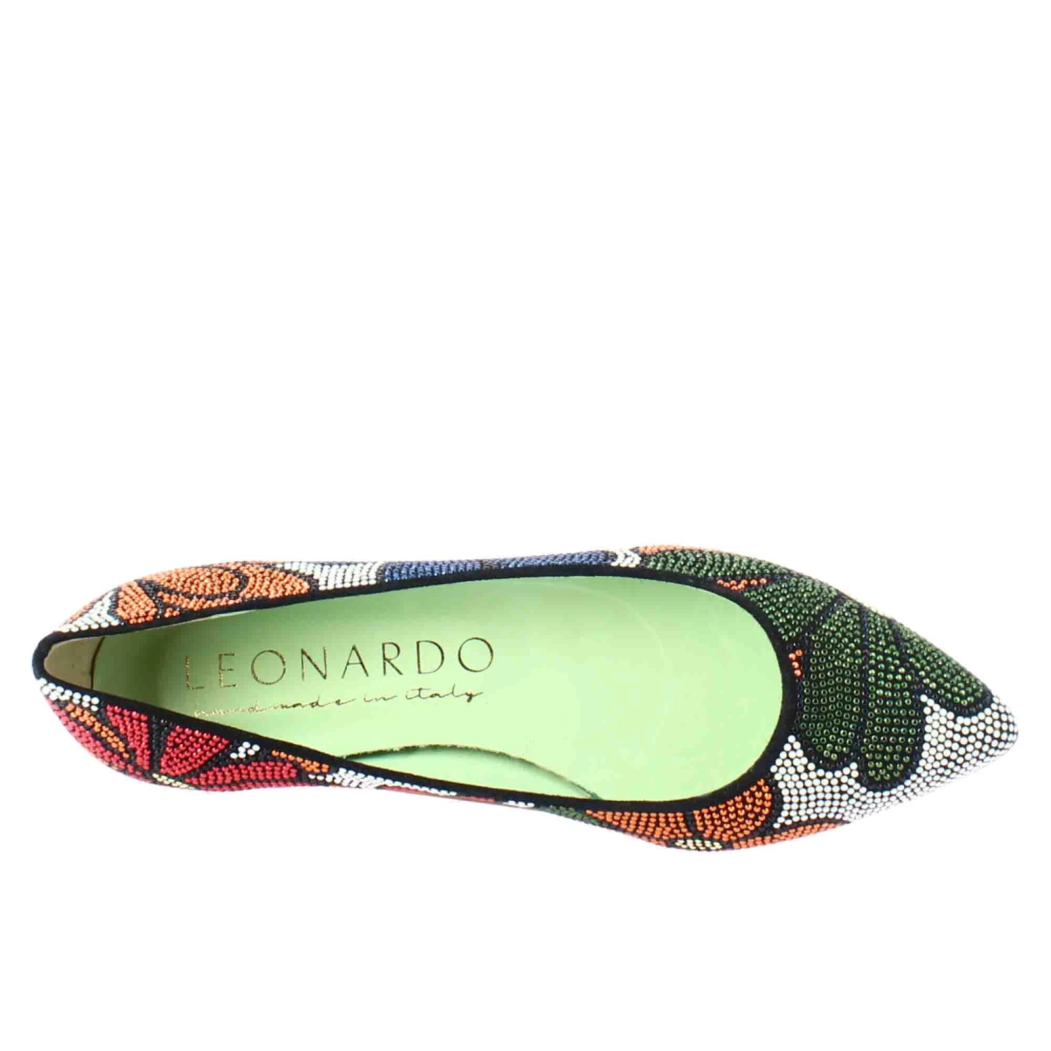 - Women’s ballet flat with application of rhinestones in the shape of a colorful floral pattern