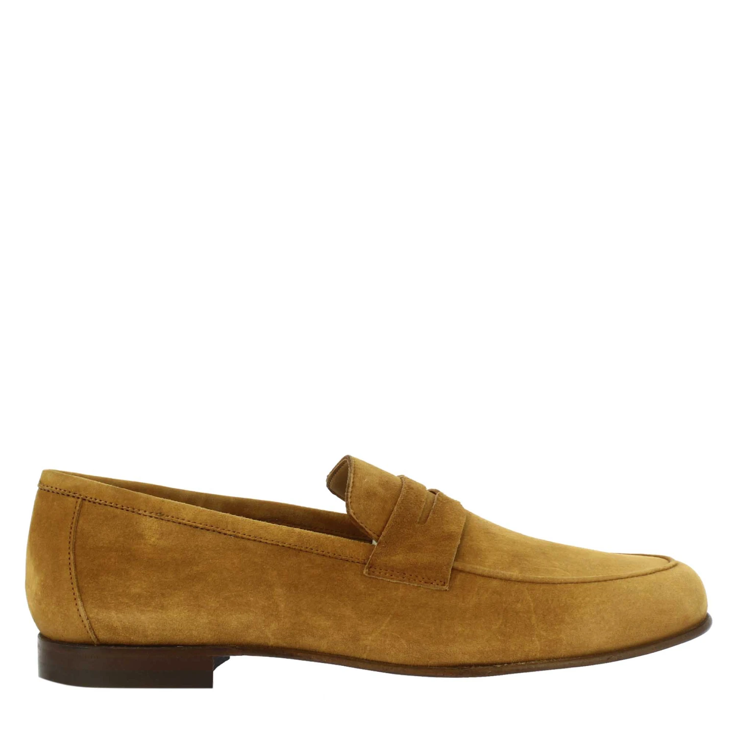 Men’s slip-on loafers with rounded toe in brown suede LEATHER with leather SOLE, handmade in Italy.