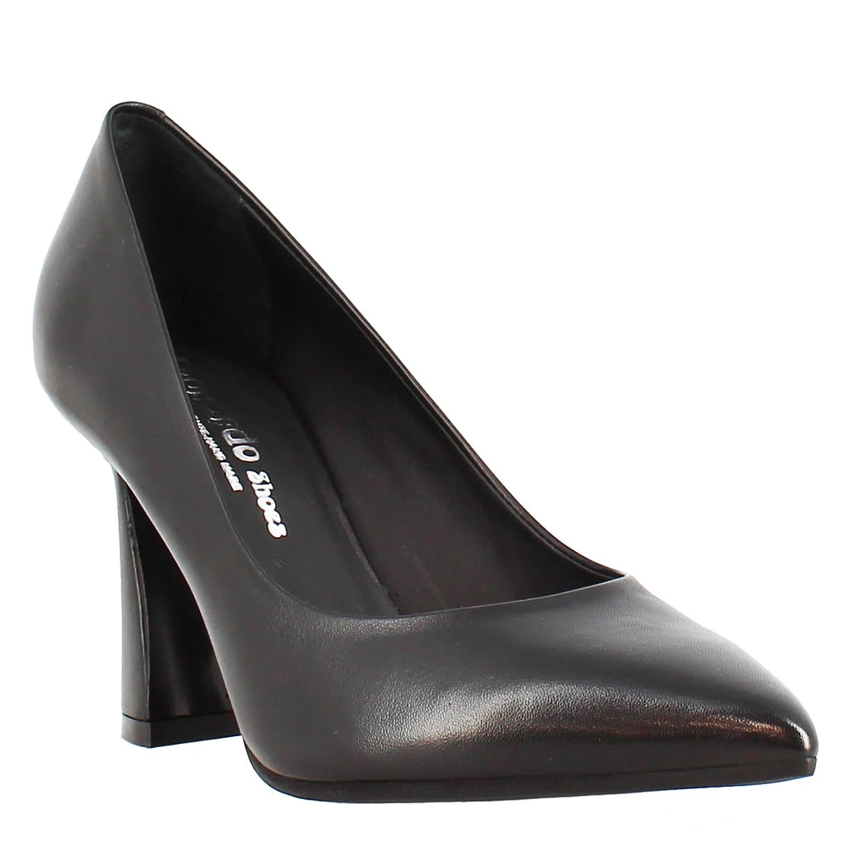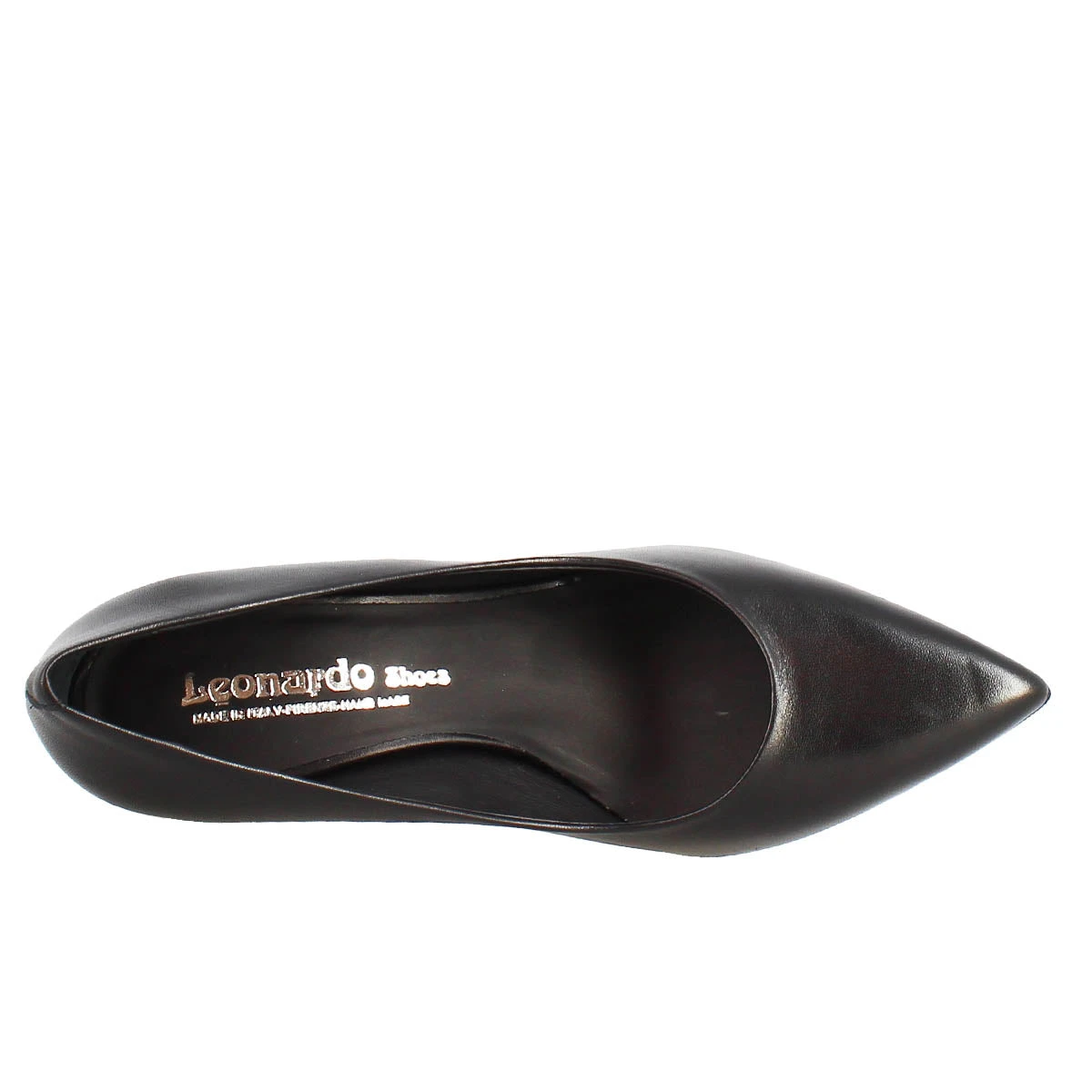 Décolletté in black Vienna leather with leather sole, 100% Made in Italy.