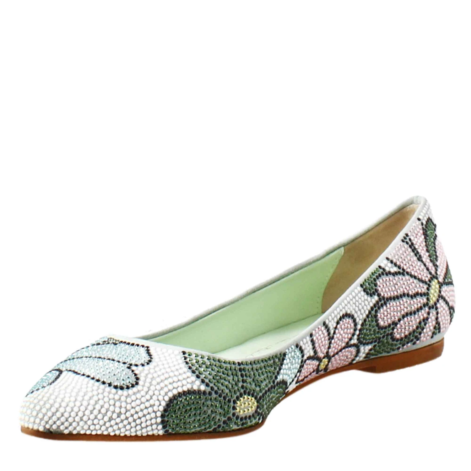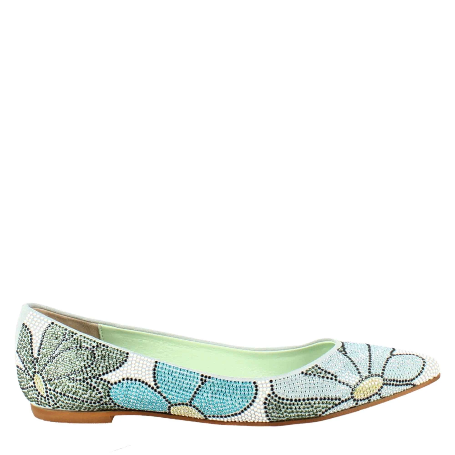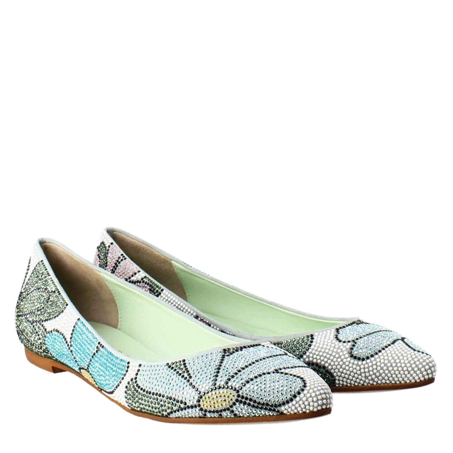 - Women’s ballet flat with application of rhinestones in the shape of a colorful floral pattern