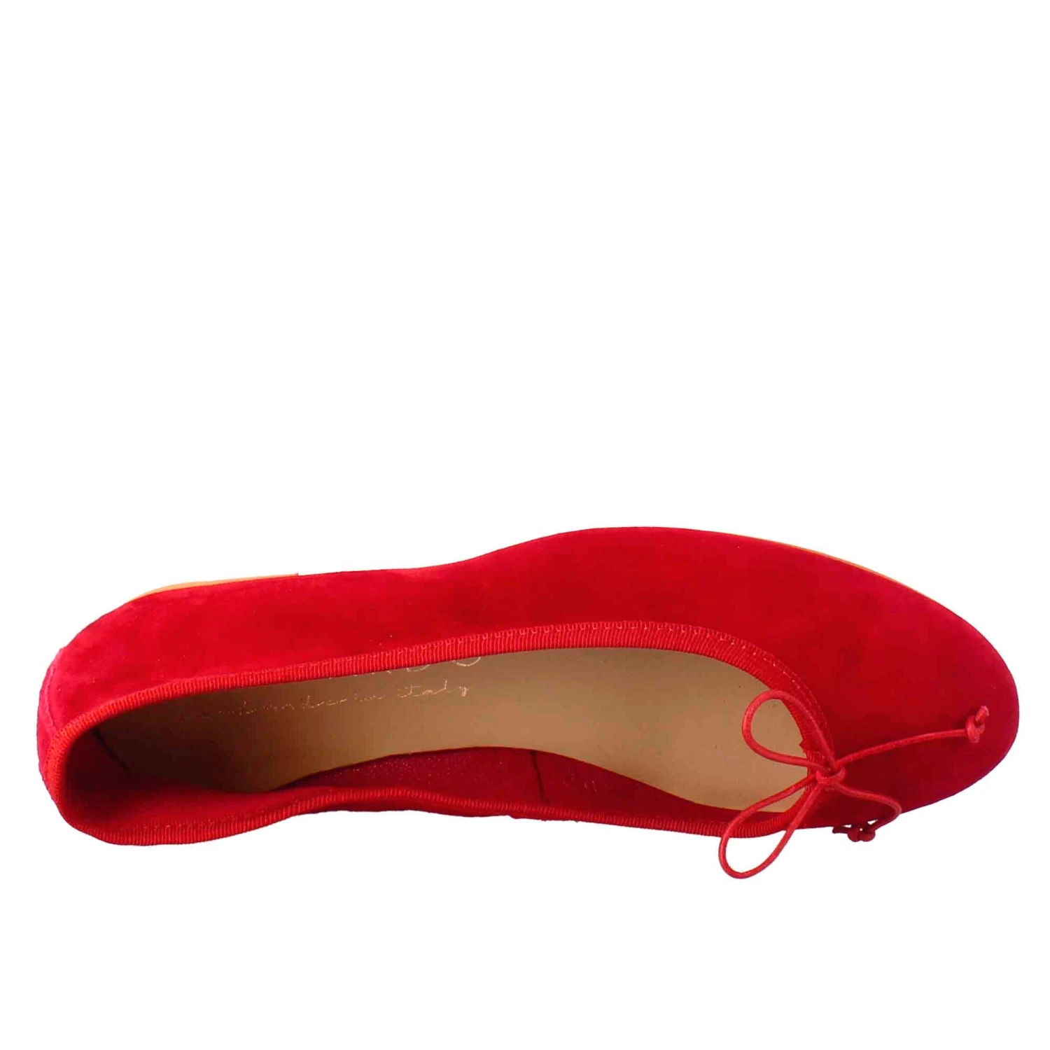 - Unlined red women’s ballet flat