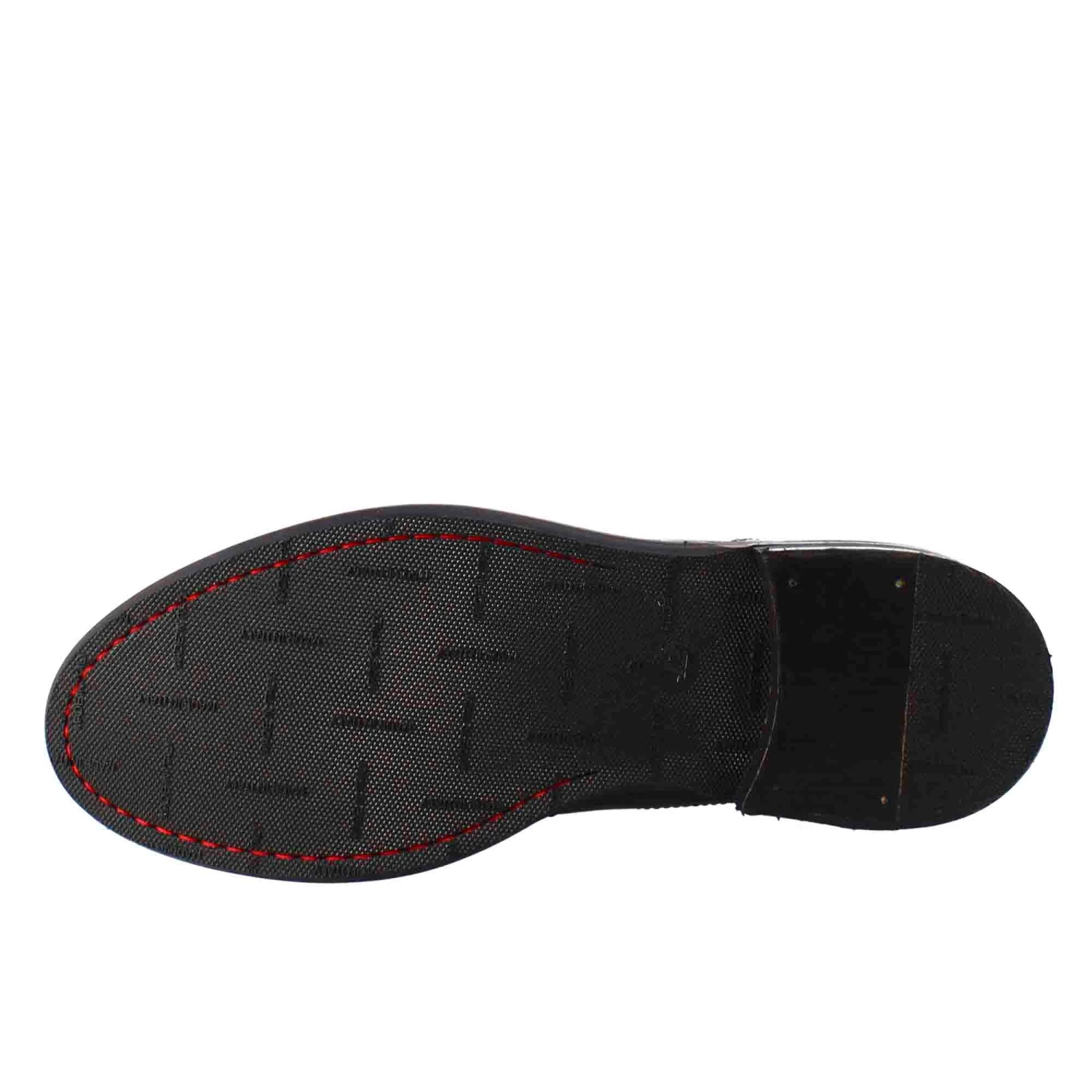 - Leather sole protected by non-slip rubber