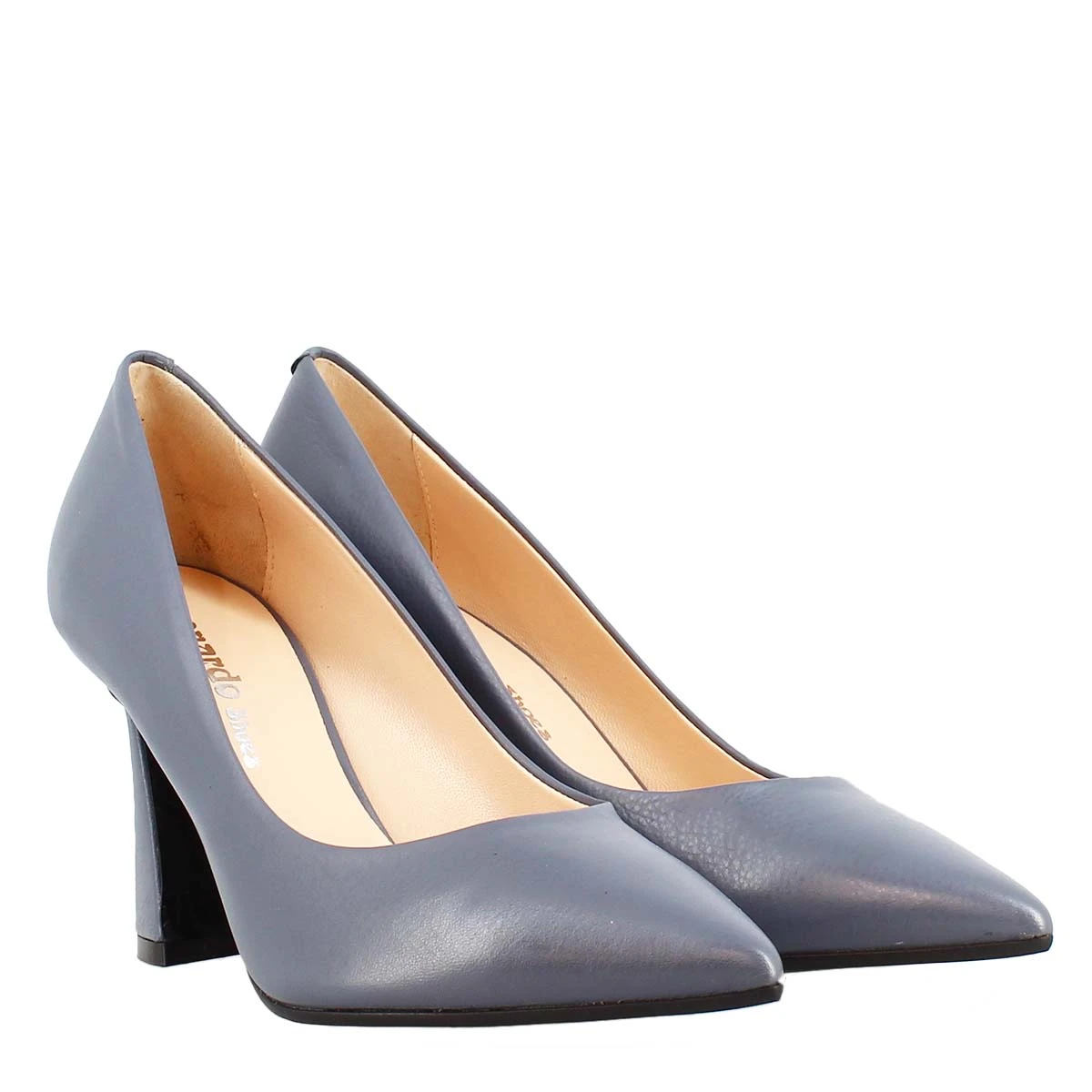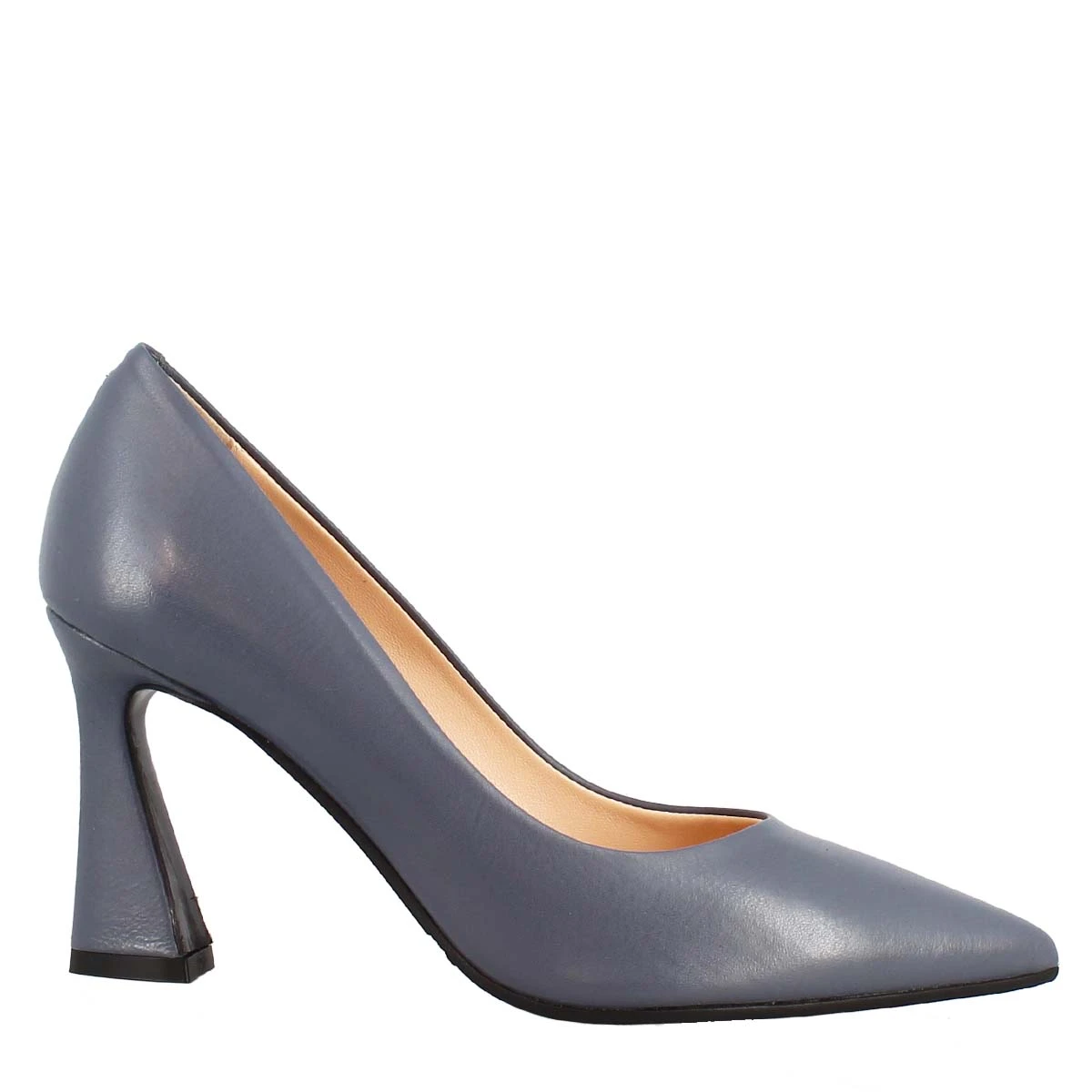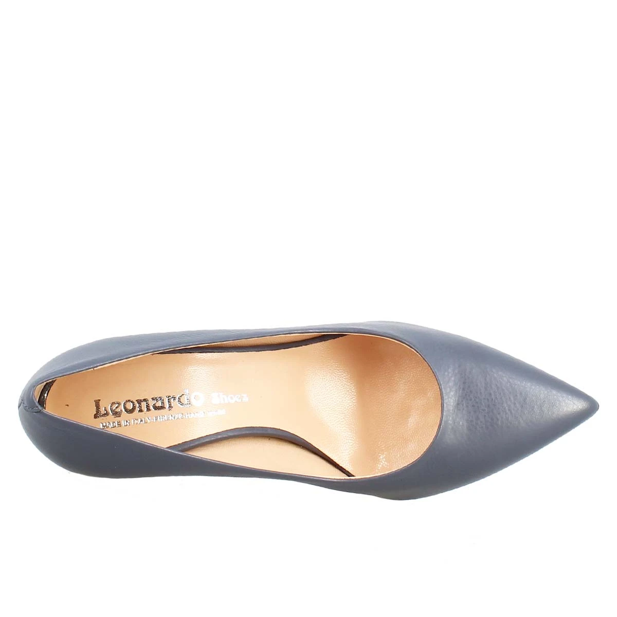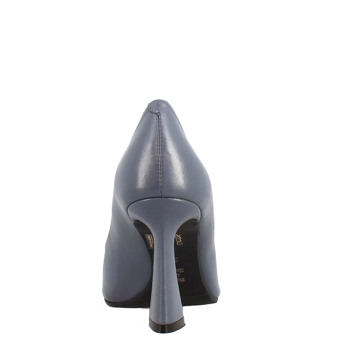 Pointed toe décolleté in light blue leather , 100% Made in Italy.