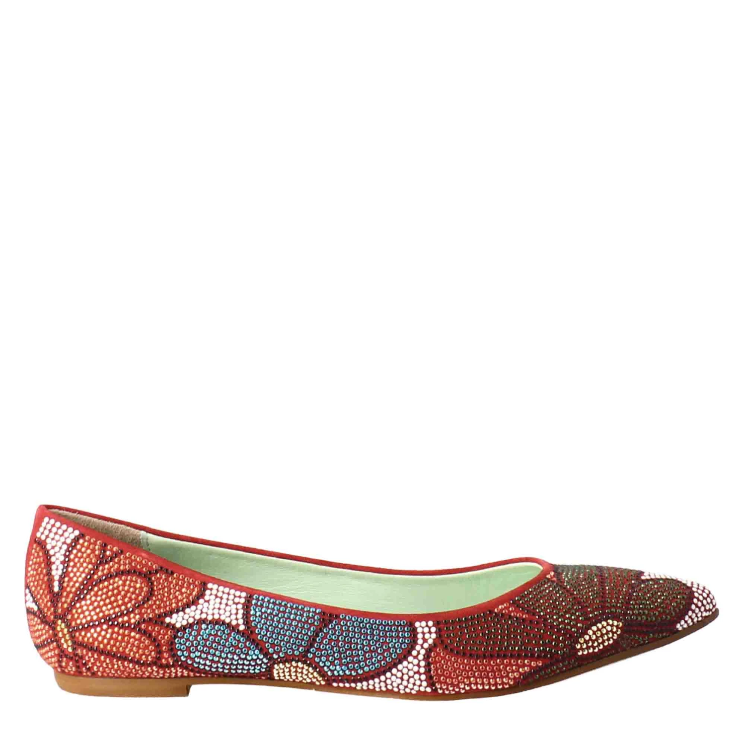 Red Women’s Ballet Flats In Suede With Rhinestones