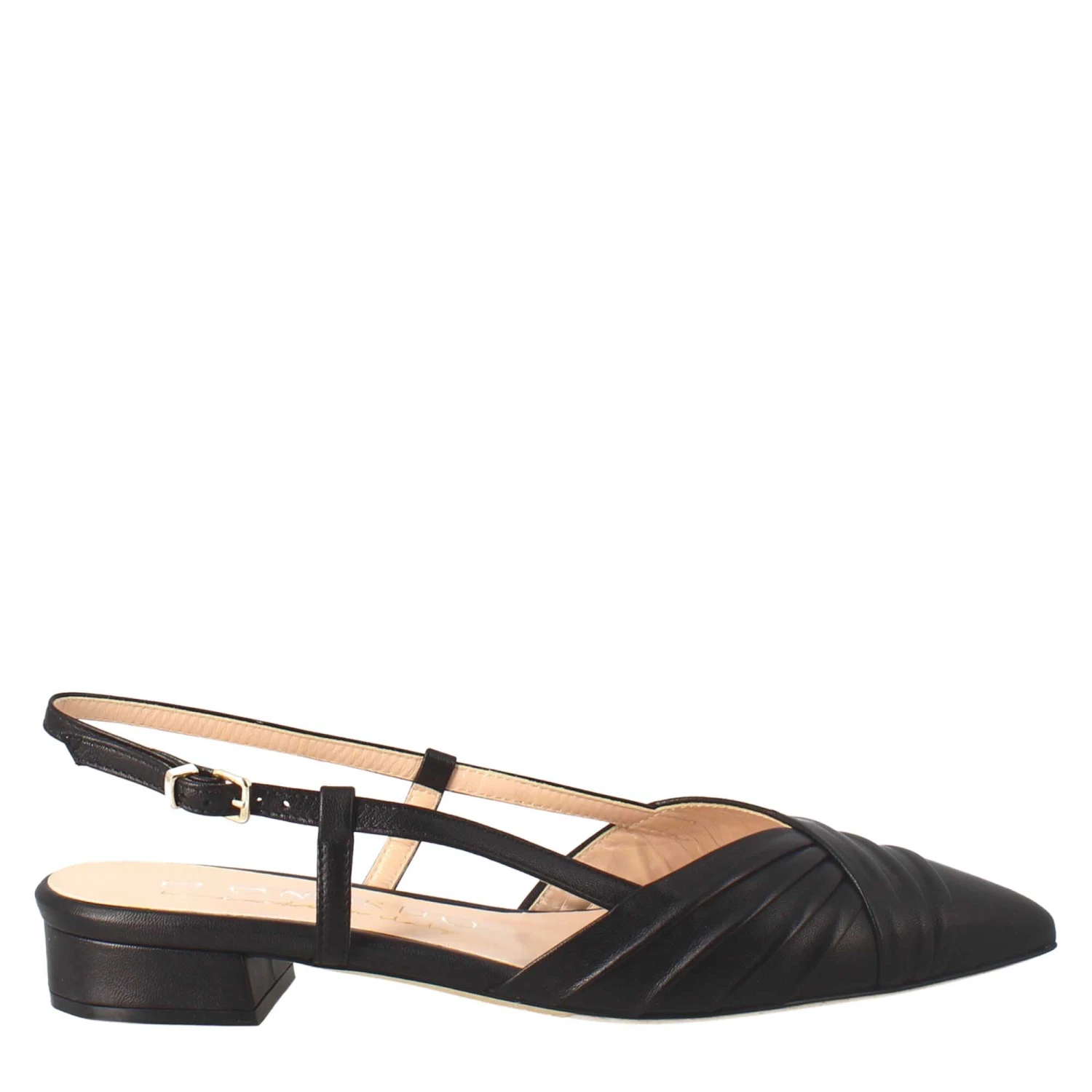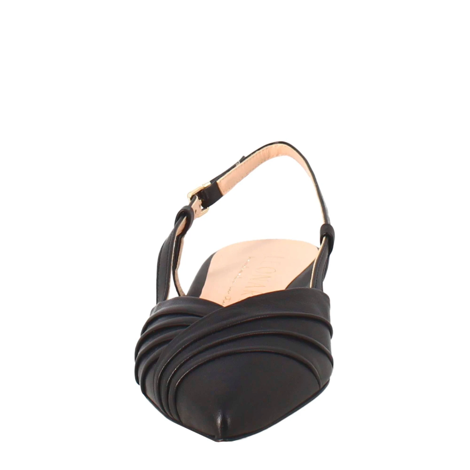 - Pointed woman’s sandal with black pleated leather effect