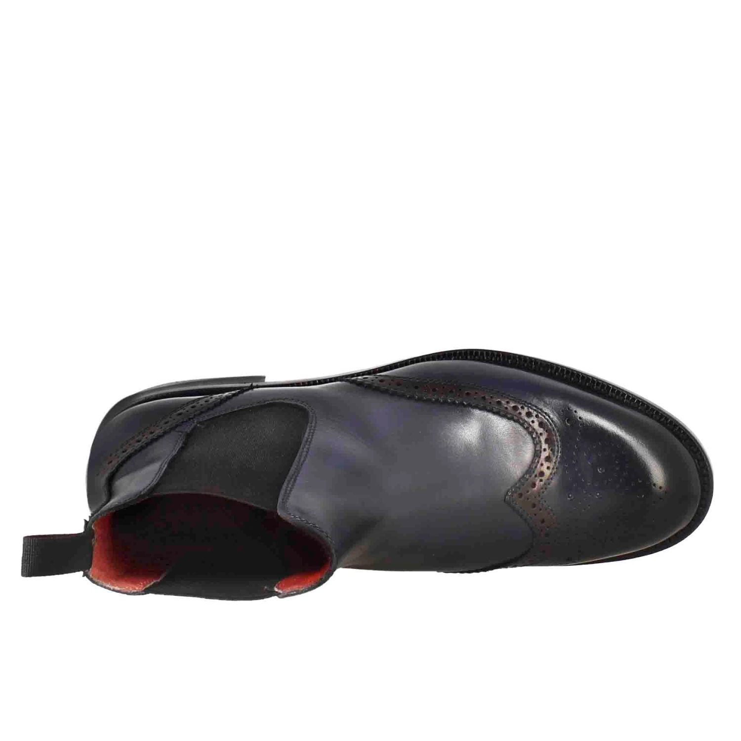 - Blue full-grain leather with brogue effect