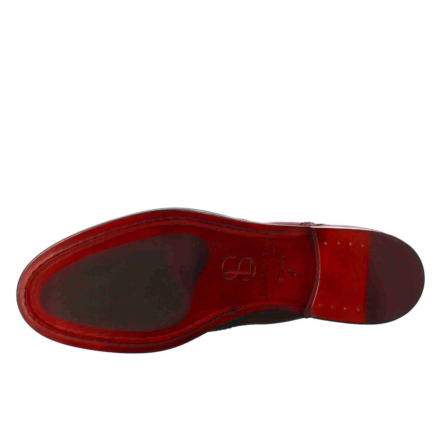 - Burgundy full-grain leather with brogue effect
