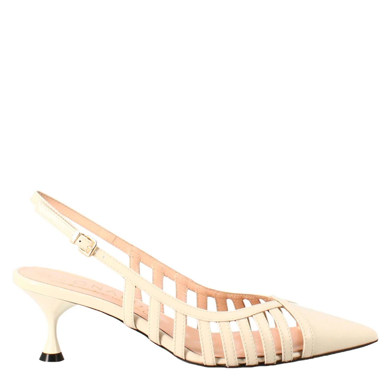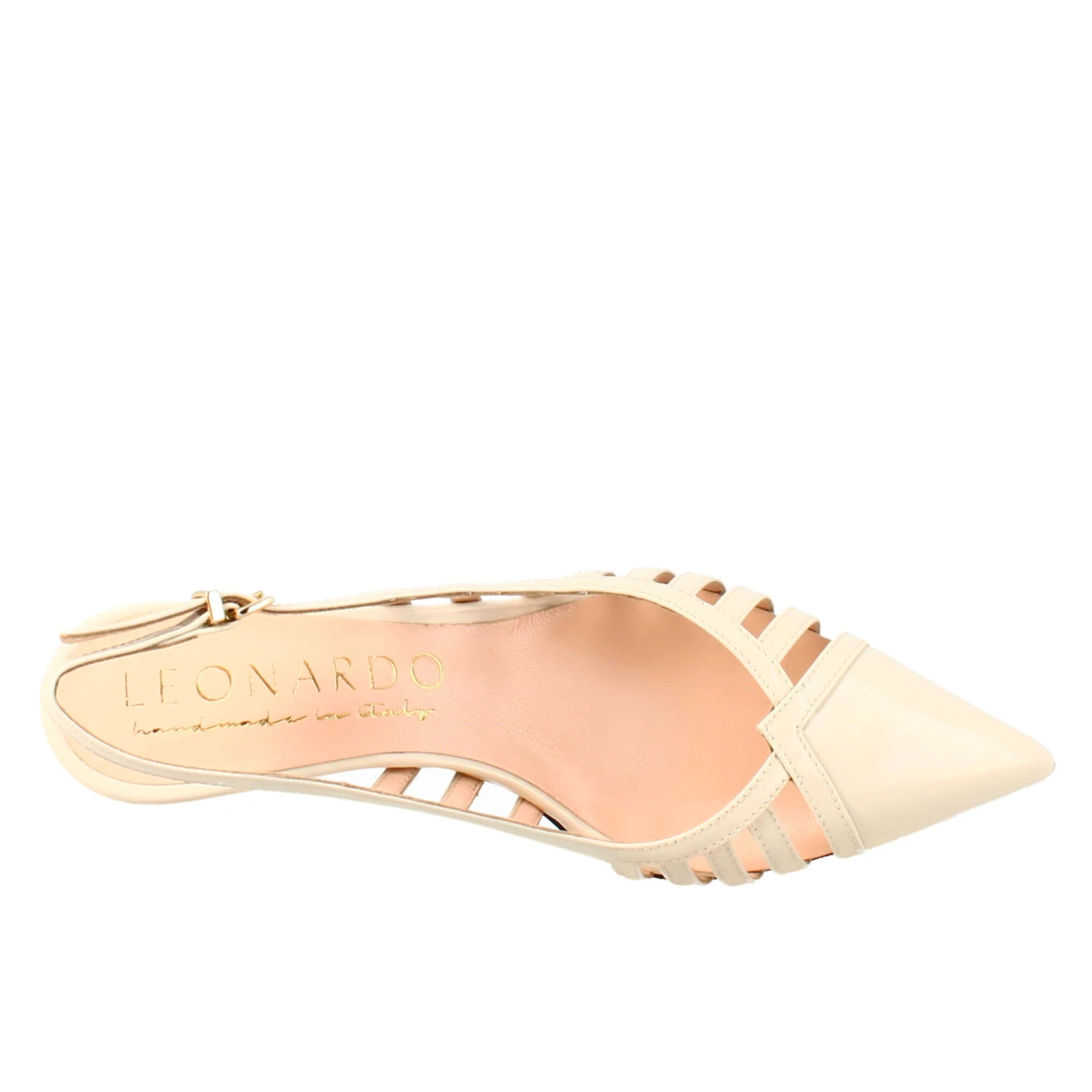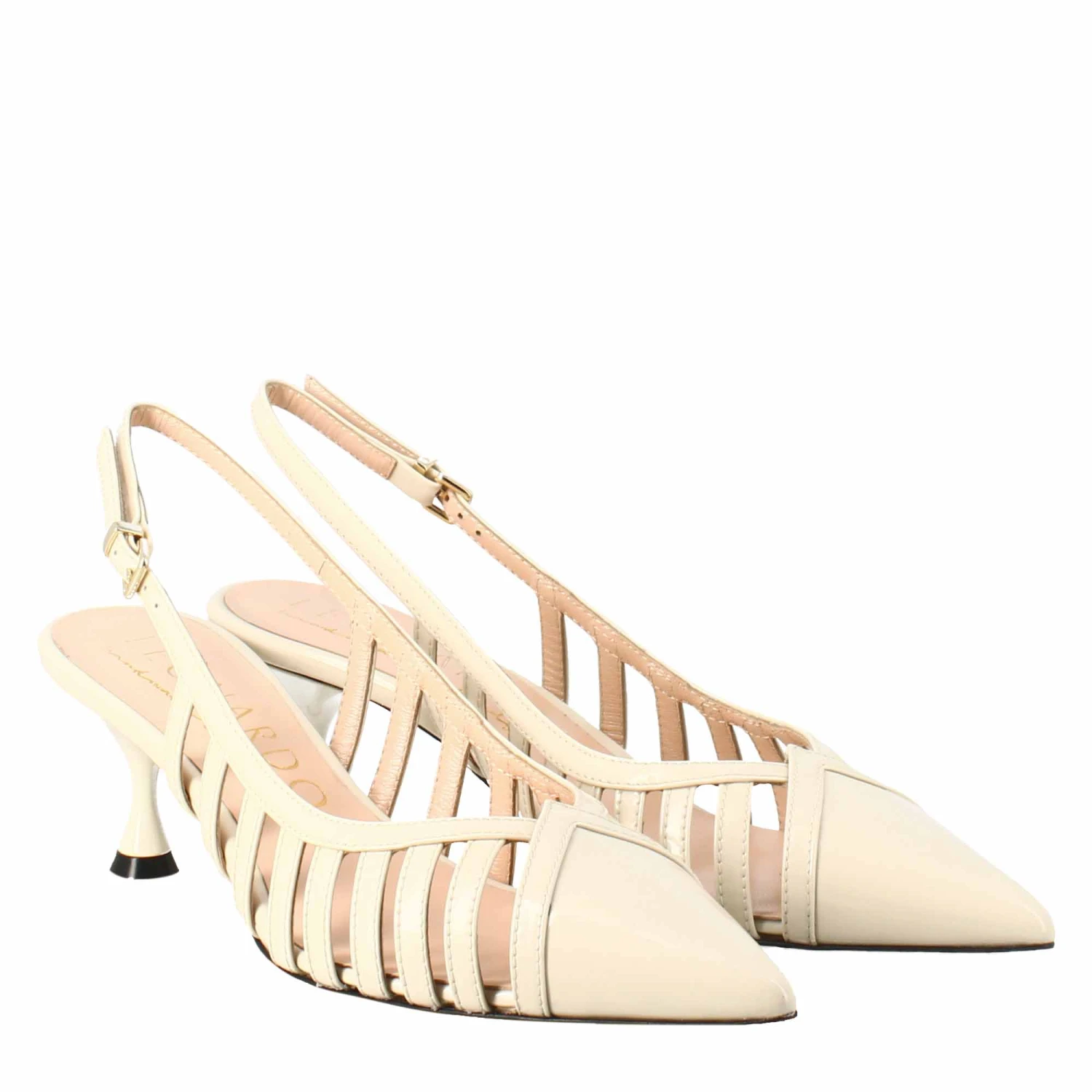 Pointed women’s pumps in beige patent leather