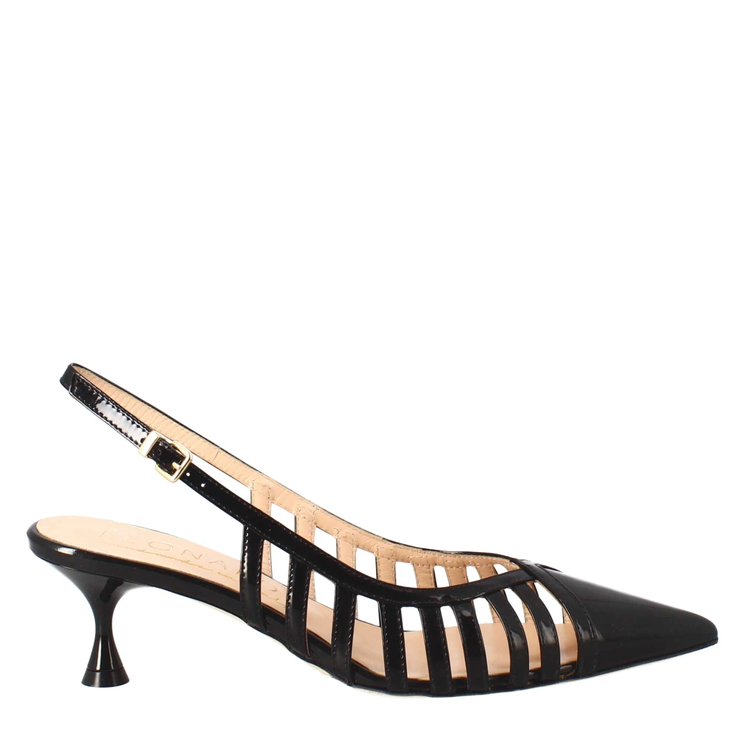 - Pointed toe women’s décolleté in black patent leather