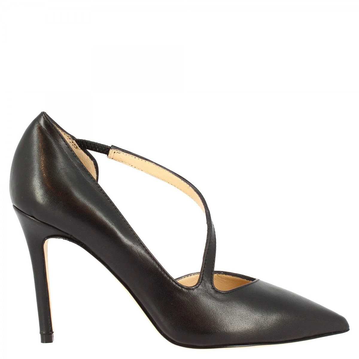 Elegant pointed toe pumps with high heels for women in black nappa leather with leather sole, handmade in Italy.