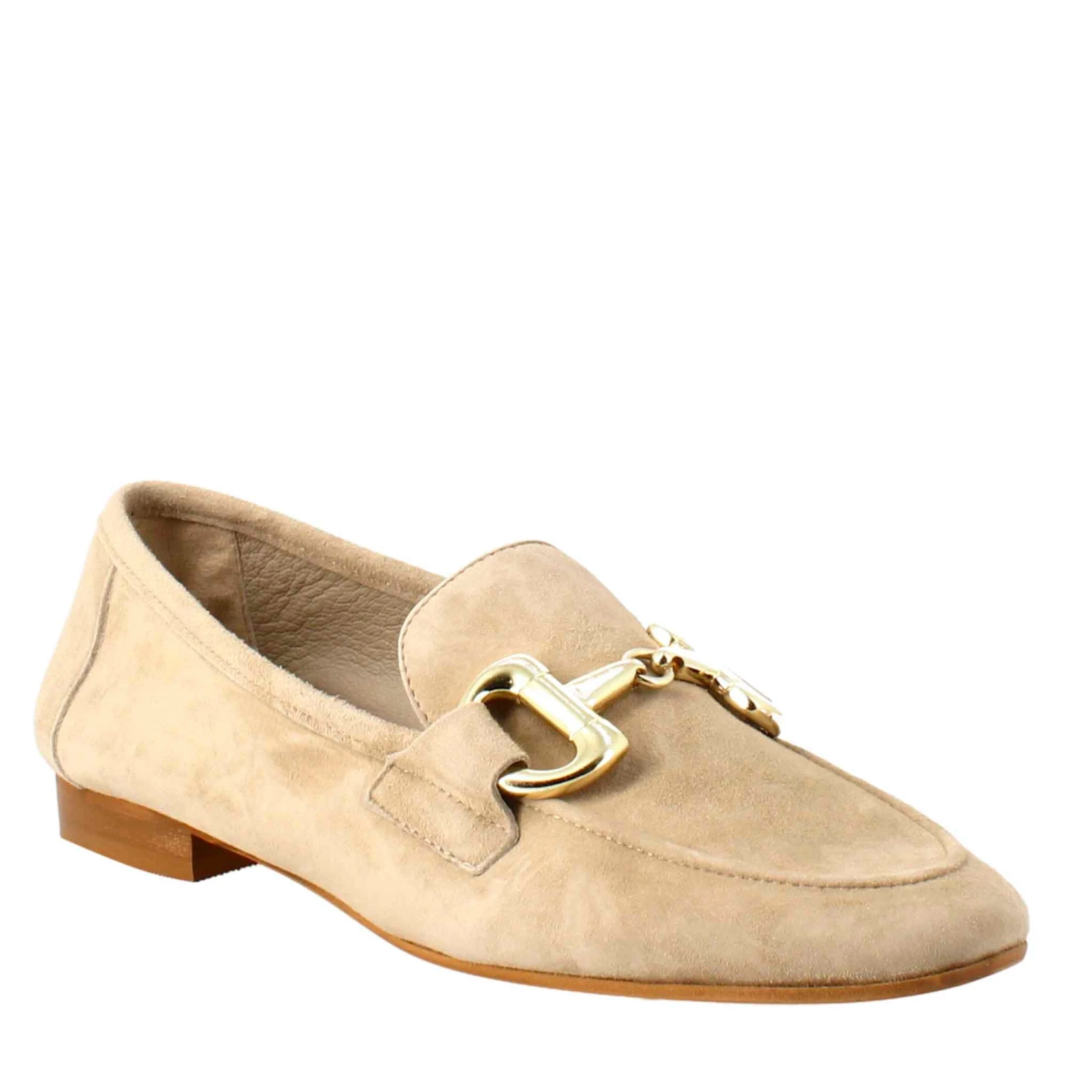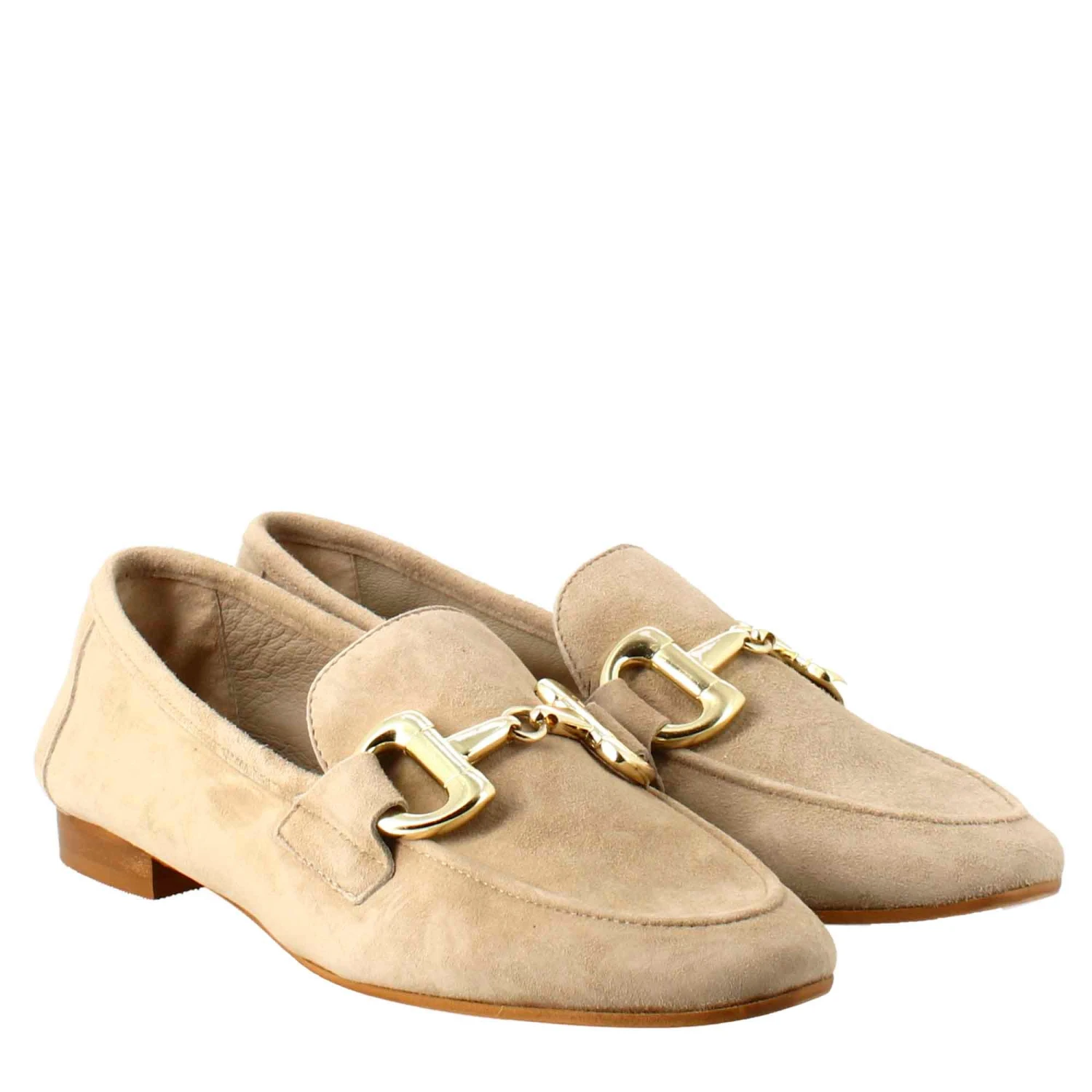 - Women’s moccasin with gold buckle
