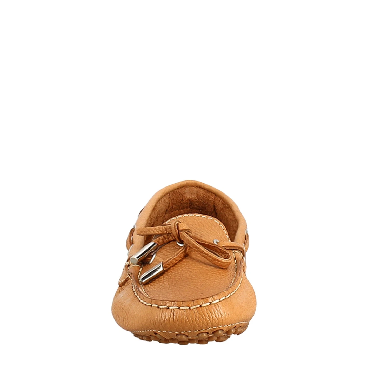 - Tubular women’s moccasin in brown crumpled leather